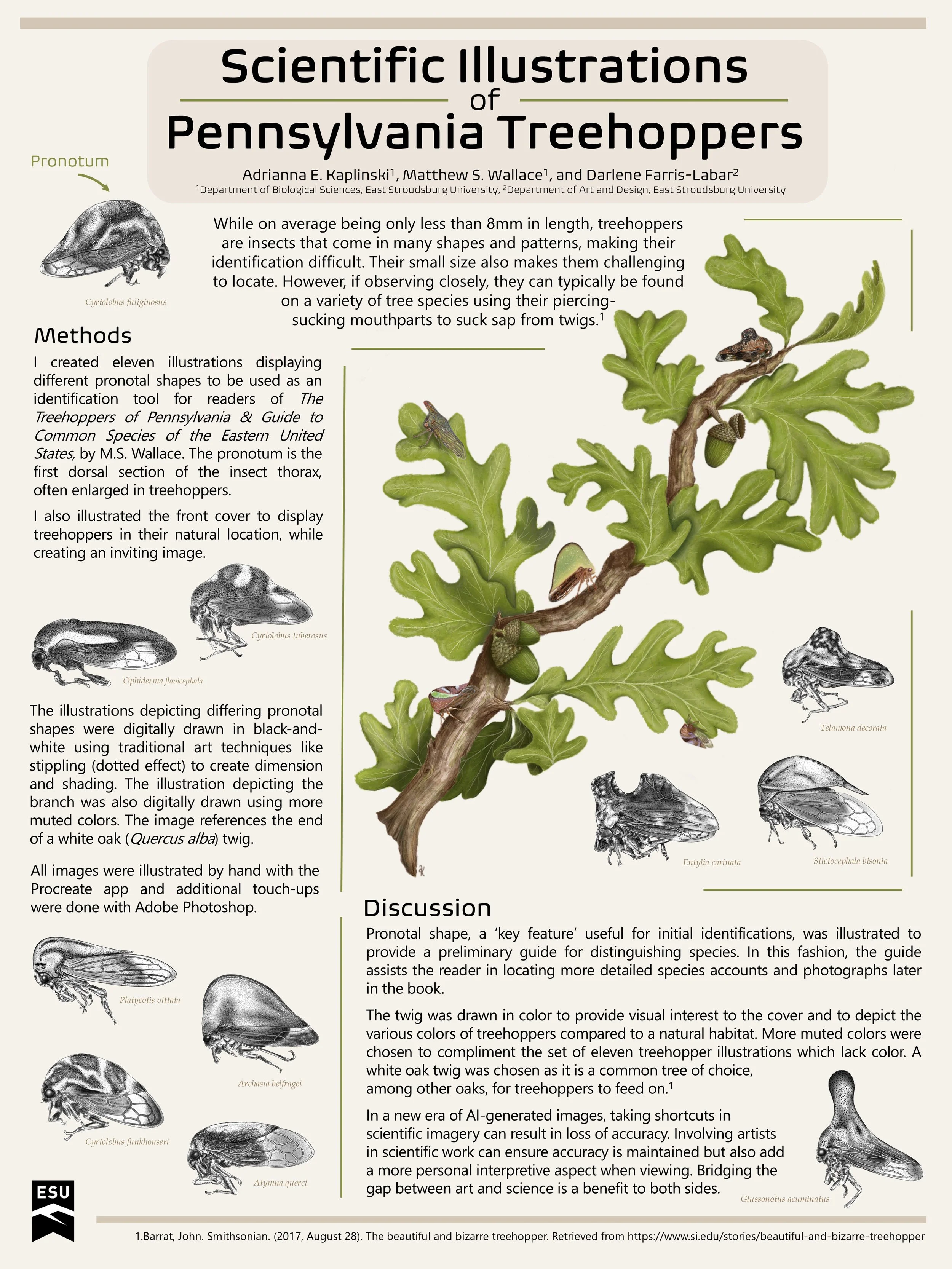 This poster was made to showcase and explain the illustrations I created for The Treehoppers of Pennsylvania & Guide to Common Species of the Eastern United States by Matthew S. Wallace and to present my work at the Northeastern Natural History Conference (NENHC) 2025.